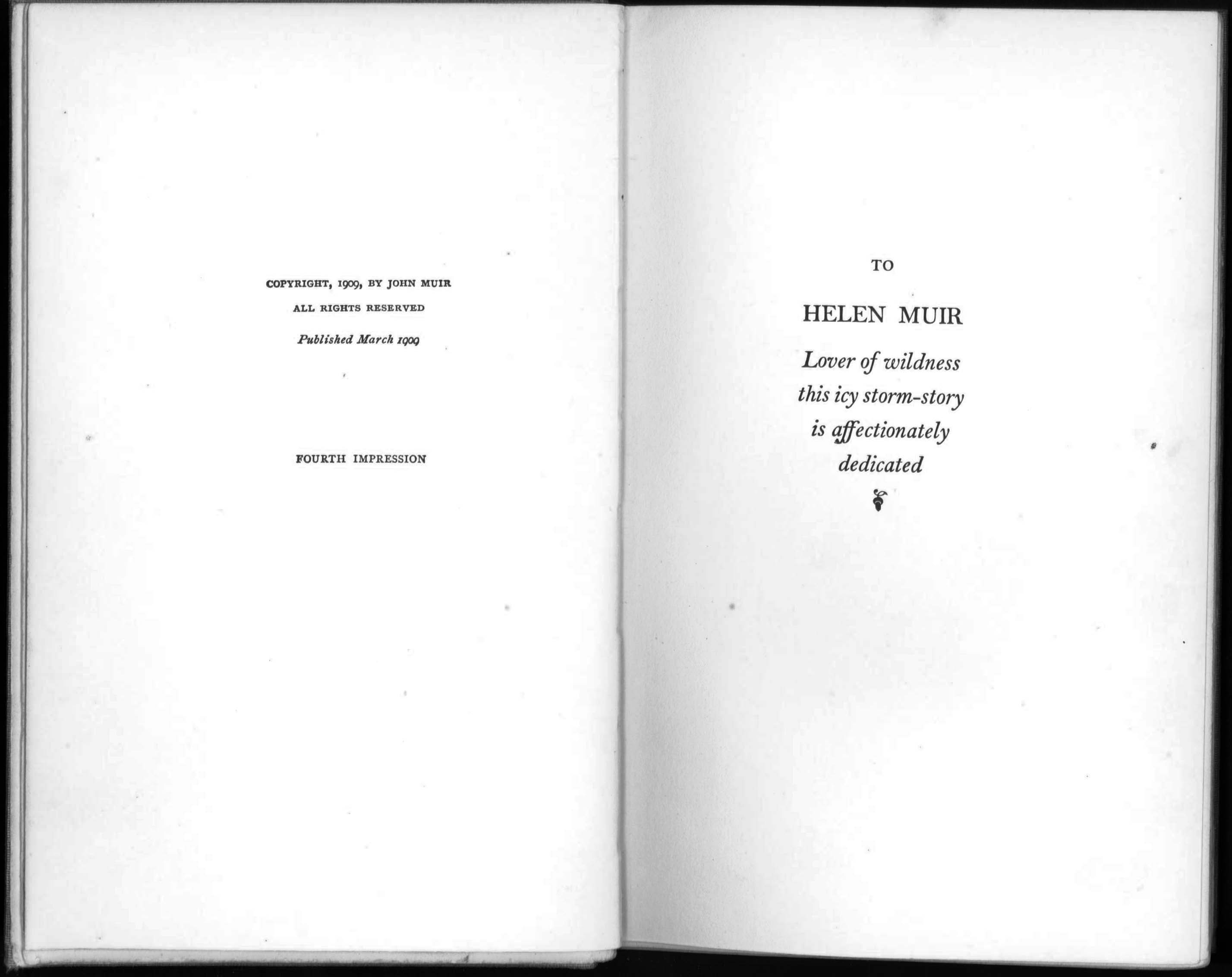 First edition of this classic "icy storm-story" 4th impression of the first edition of 1909, dedicated to Muir's daughter, Helen, "lover of wildness". This is John Muir's story of a dog named Stickeen (after a tribe of Indians at Fort Wrangel, Alaska [now Wrangell) with whom a bond of exploration and appreciation developed as they together explored wilds of Alaska,culminating in a life-threatening episode during a storm while exploring the Brady Glacier in what is now Glacier Bay National Park. Francis H. Allen wrote in a preface to one of the many issues of this book, "Stickeen is one of the best dog stories ever written,..[I]t opens a window into the heart and soul of a dog, so that we can see how much like a man he is in some respects and can sympathize with him." Published by Houghton Mifflin Company of Boston and New York. Size is 4 3/4 in. by 7.5 in., cloth bound in tan covers with title and author's name printed on front cover and on spine. 74 pages plus front matter.