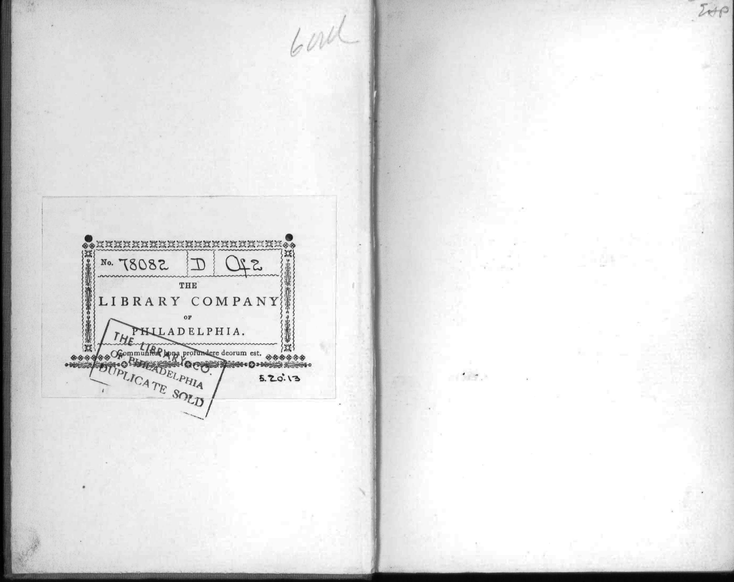 Condition: Acceptable. Library sticker on front cover; covers somewhat soiled. Library labels and stamp on inside front and inside back covers plus embossed impressions on title page. No markings on pages and no lloose pages, binding strong; slight soiling on covers; minor fraying at top and bottom of spine. An ex-library copy from The Library Company of Philadelphia.