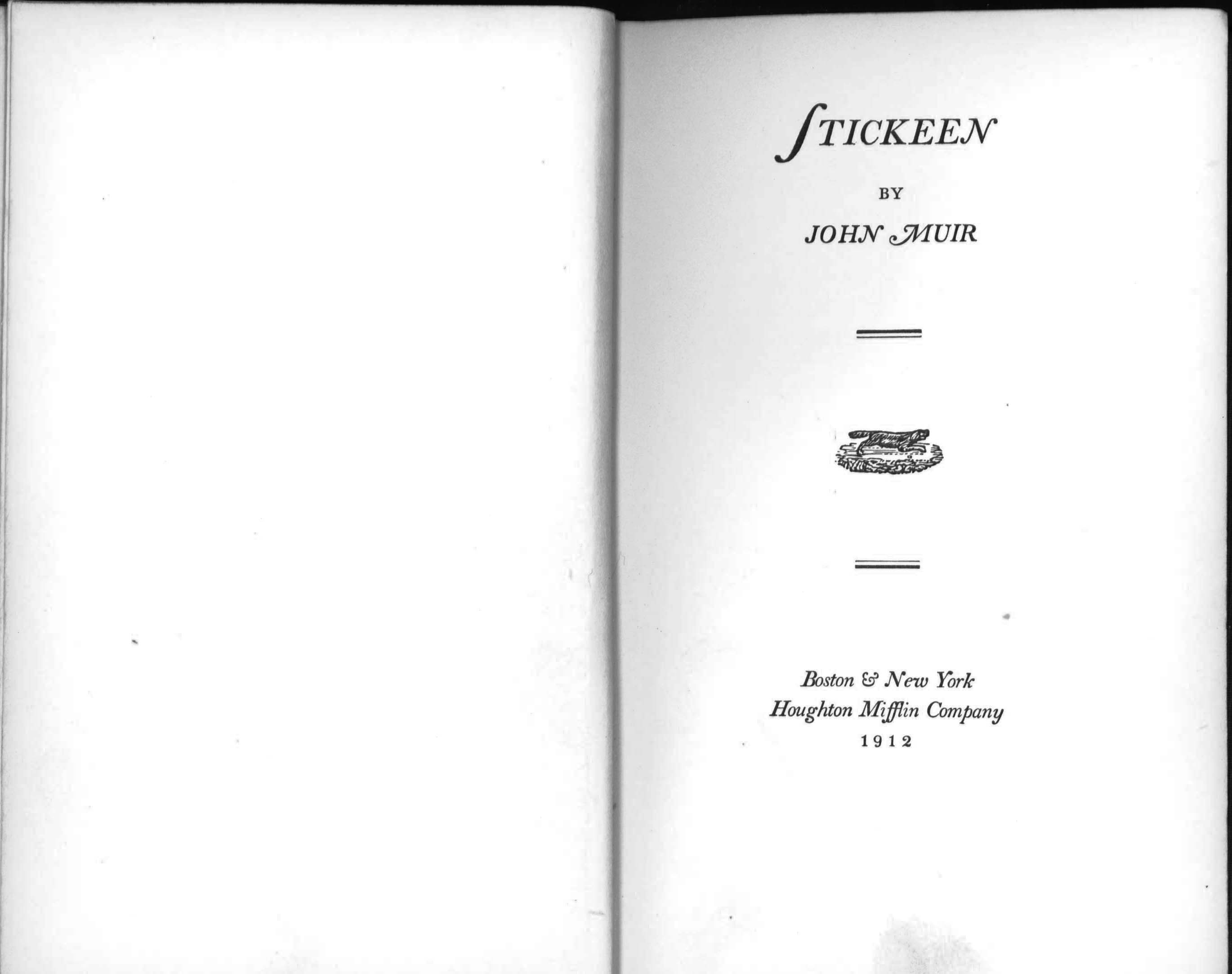 First edition of this classic "icy storm-story" impression of 1912 of the first edition of 1909, dedicated to Muir's daughter, Helen, "lover of wildness". This is John Muir's story of a dog named Stickeen (after a tribe of Indians at Fort Wrangel, Alaska [now Wrangell) with whom a bond of exploration and appreciation developed as they together explored wilds of Alaska,culminating in a life-threatening episode during a storm while exploring the Brady Glacier in what is now Glacier Bay National Park. Francis H. Allen wrote in a preface to one of the many issues of this book, "Stickeen is one of the best dog stories ever written,..[I]t opens a window into the heart and soul of a dog, so that we can see how much like a man he is in some respects and can sympathize with him." Published by Houghton Mifflin Company of Boston and New York. Size is 4 3/4 in. by 7.5 in., cloth bound in tan covers with title and author's name printed on front cover and on spine. 74 pages plus front matter.