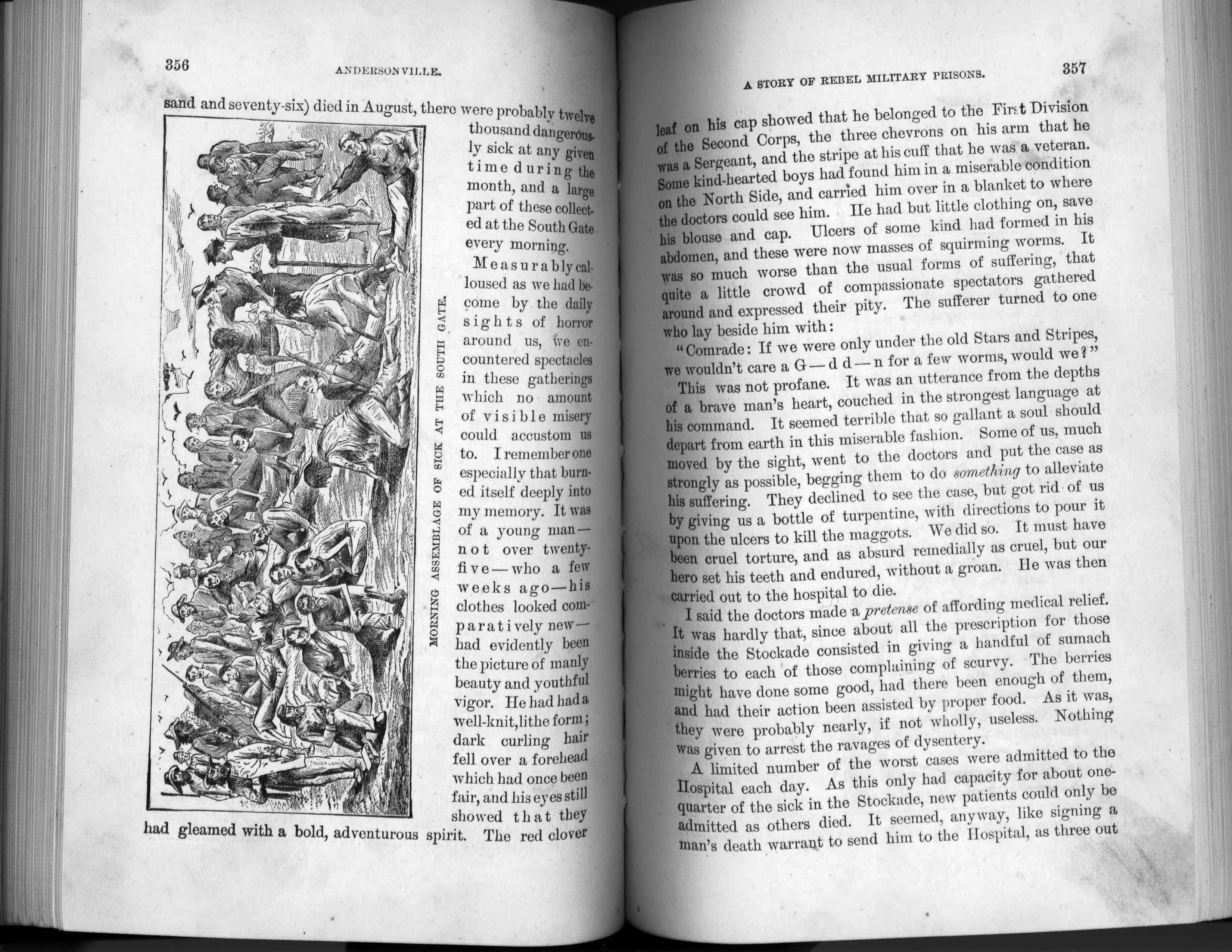 RC ANDERSONVILLE: a story of rebel military prisons. by John McElroy, Late of Col. L 16th Ills. Cav. 1879 first edition, blue cover. Published by D.R. Locke, Toledo. From title page: "Fifteen months a guest of the so-called Southern Confederacy. A private soldier's experience in Richmond, Andersonville, Savannah, Millen, Blackshear, and Florence. The Andersonville prison for Federal soldiers was notorious for its harsh conditions; of 45,000 prisoners (4 times its capacity and a population greater than that of many U.S. cities at that time), nearly 13,000 died. There was little food, not much shelter, and poor water. The prison was established near the end of the Civil War and lasted less than 2 years, its warden being hanged for his offenses in 1865. The account details the grim life of the captives; their sometimes brutal, even fatal, treatment by their captors; their longing for escape and attempts to get out; and their failures. Included also are accounts of other rebel prisons. There are 655 +xxx pages, 154 illustrations (listed by page number) of prison features and conditions, inmates, and their captors. One shows an overview of the stockade interior. Size is 6 in. x 9 in. and 2 in. thick. The narrative is divided into 83 chapters as an important work of American history--or of any analysis of incarceration. The prison site is now included in the Andersonville National Historic Site, administered by the National Park Service as is the nearby Andersonville National Cemetery where many of the former inmates are interred.