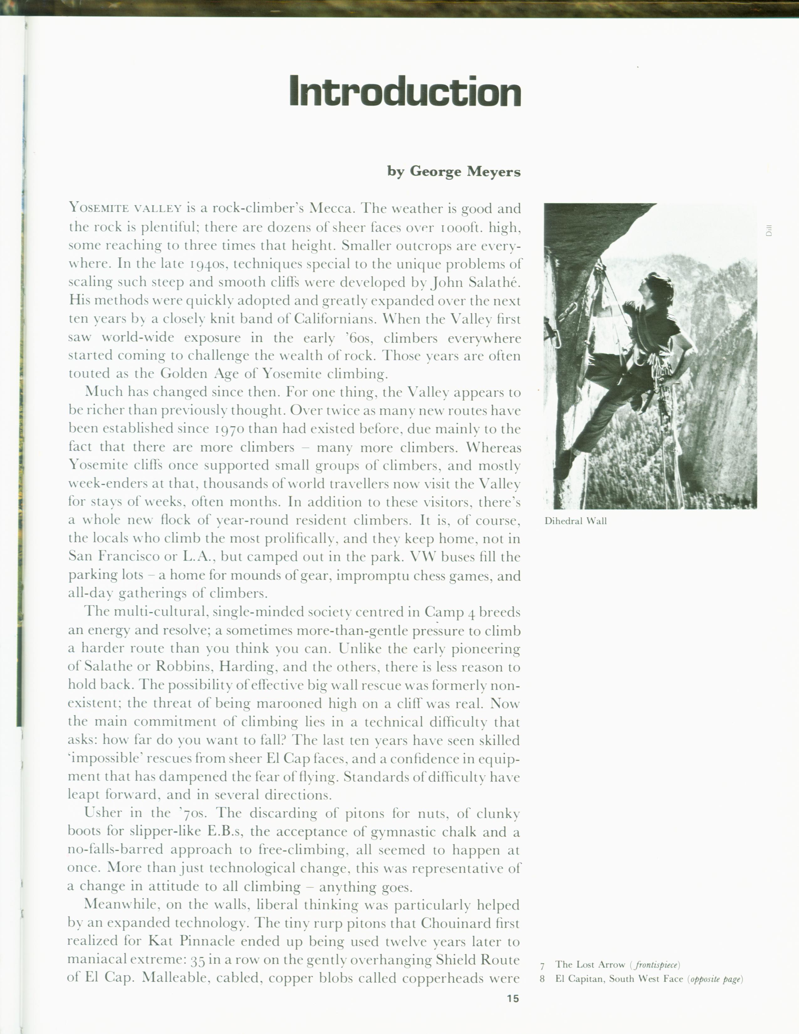 Essays and dramatic action photographs give insights into the challenges and rewards of climbing Yosemite's
